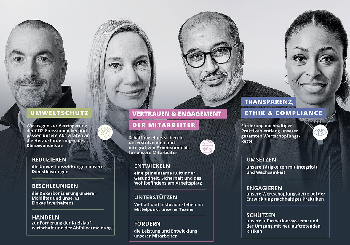 Als Dienstleistungsunternehmen stellen wir den Menschen in den Mittelpunkt unseres Handelns. Unsere Mitarbeiter sind unser wertvollstes Gut. Durch ihr tägliches Engagement können wir nachhaltig arbeiten und Mehrwert für alle Stakeholder schaffen. Wir schätzen die Menschen und Projekte, die täglich dazu beitragen, dass sich unser Unternehmen weiterentwickelt und wächst.